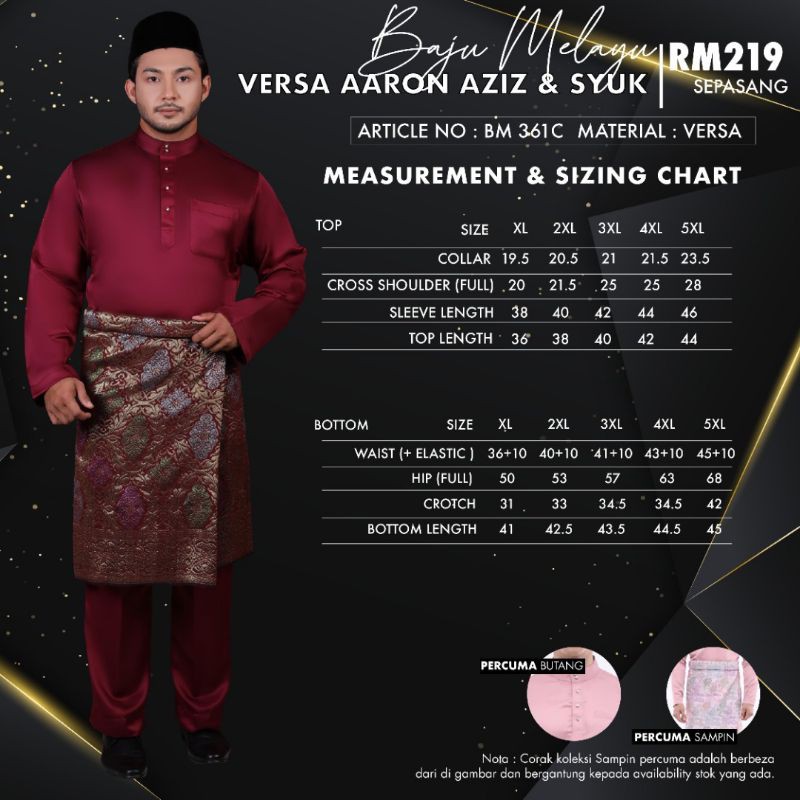Available in slim fit and regular fit with over 100 vibrant colors to choose from. Baju melayu versa AARON AZIZ SYUK PLUS SIZE. A classic Baju Melayu with a Cekak Musang button s.